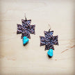 Expertly crafted with beautiful turquoise chunky stones, these handmade copper cross earrings are the perfect addition to your boho fashion collection. Elevate any outfit with the unique and genuine stone design, creating a statement piece that is both stylish and natural. Embrace your individuality with these earrings.