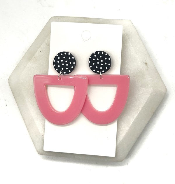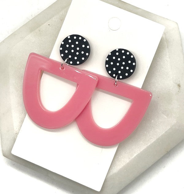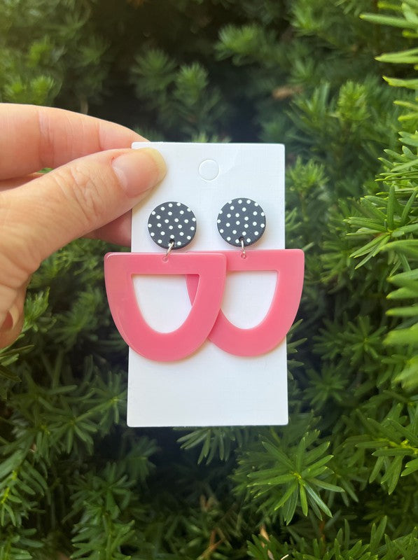 Name: Pink Polka Dot Deco Acrylic Earrings