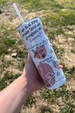 We love this 20 oz double wall tumbler full of Christian quotes. It's perfect to encourage you every time you take a sip. This is made for hot or cold beverages. It comes with a lid and straw.