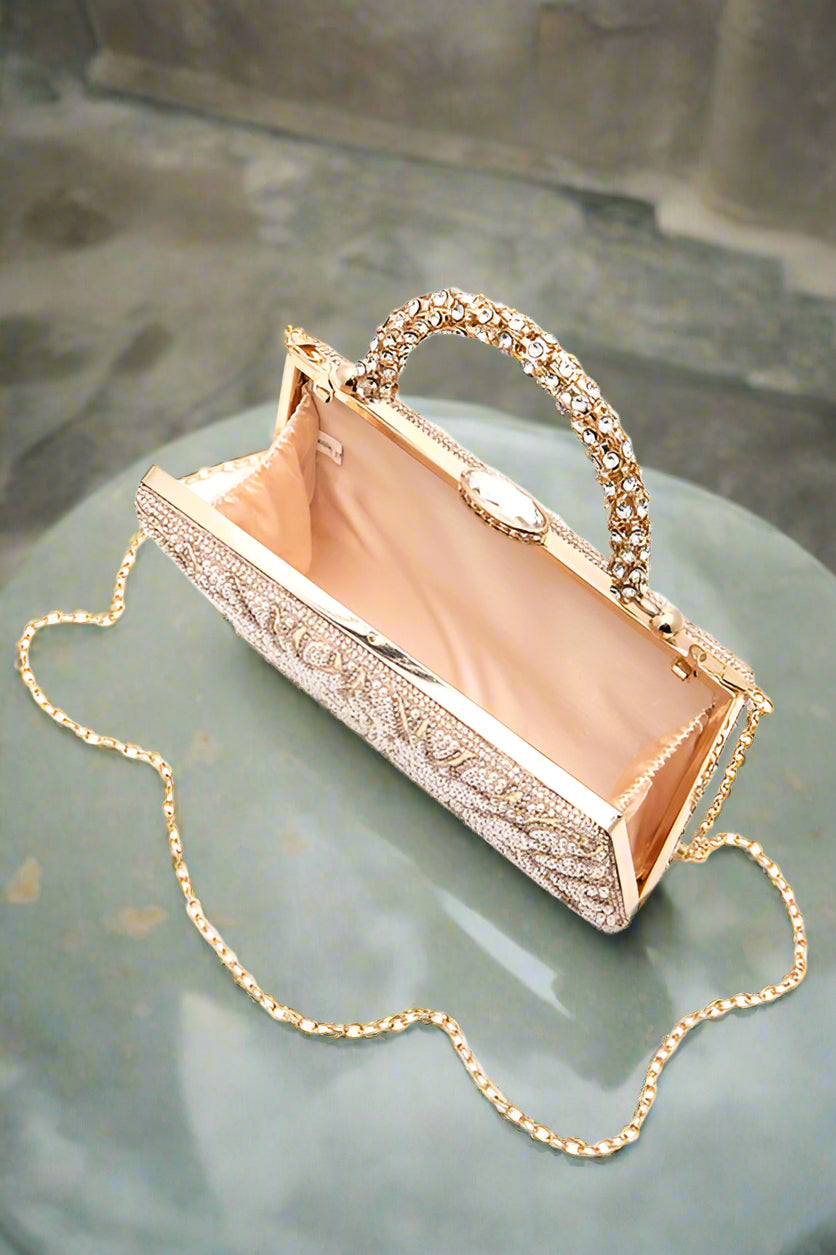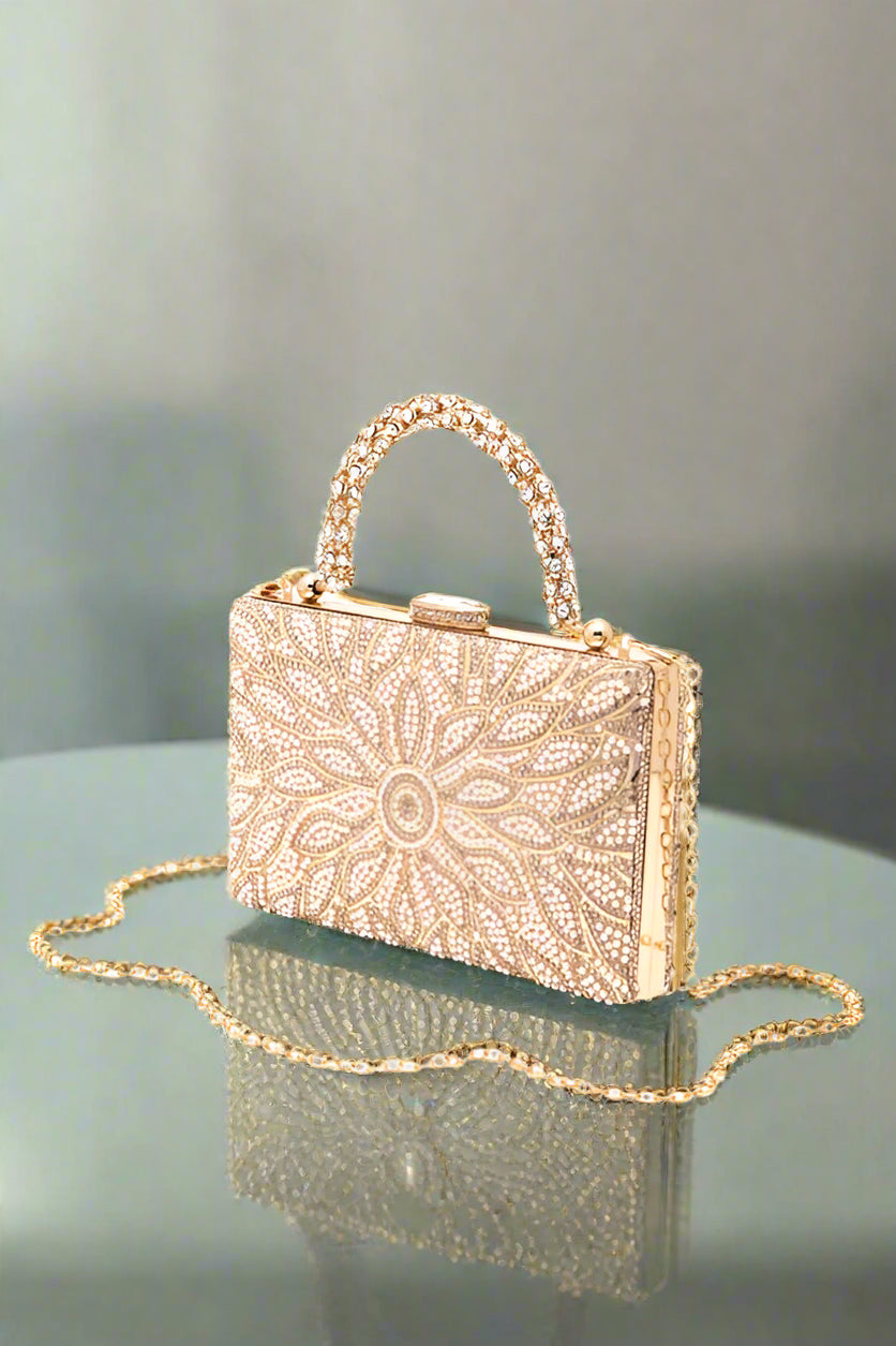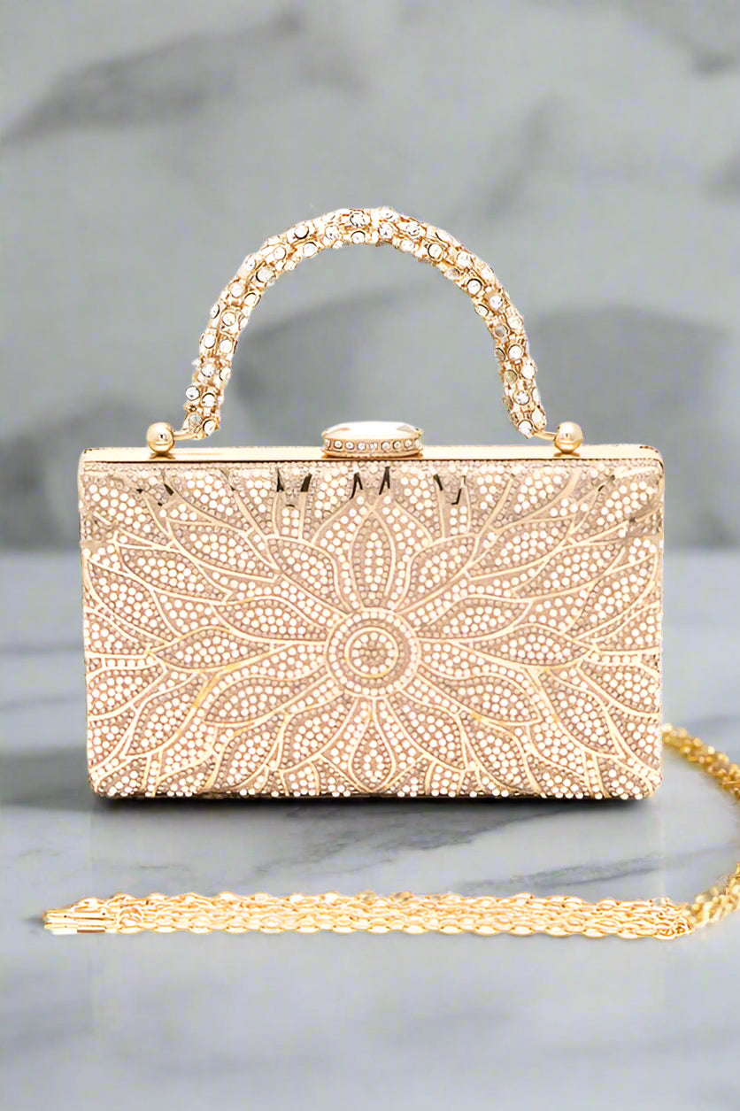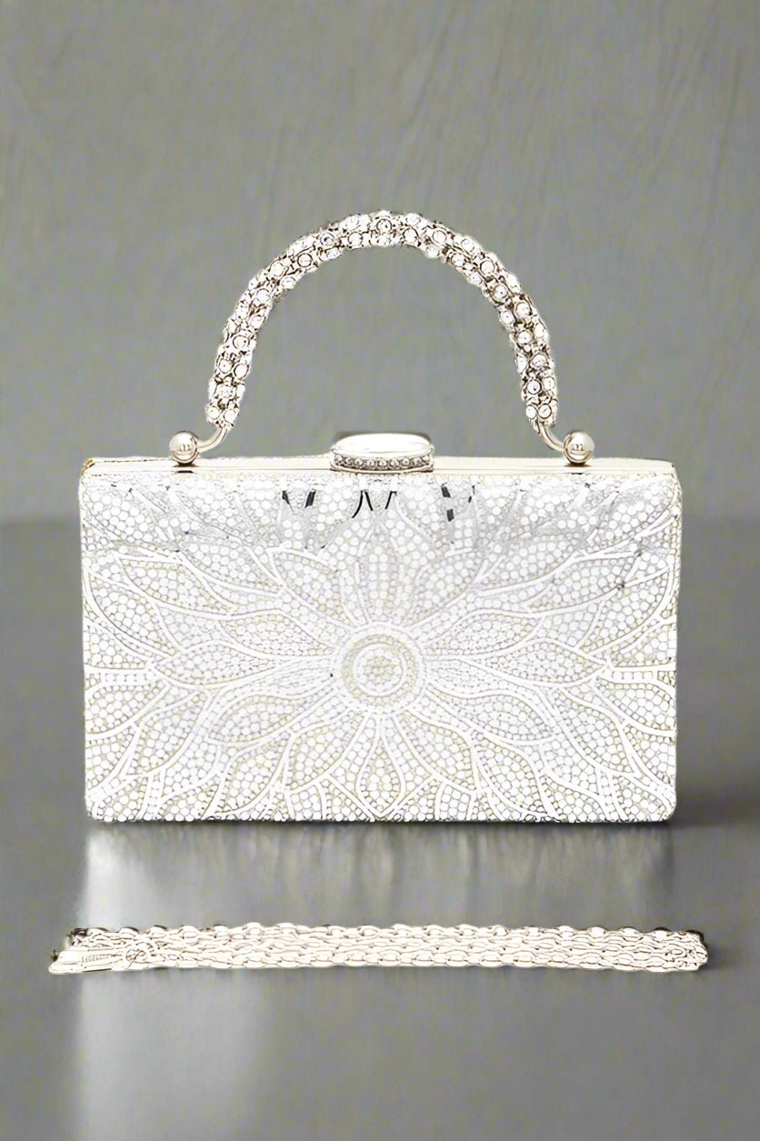 Pearl Studs Rhinestone Handle Flower Box Clutch