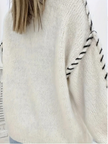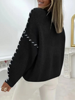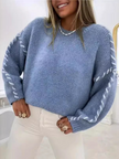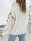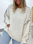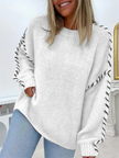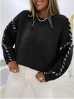 Women's Fashion Pullover Solid Color Round Neck Long Sleeve Drawstring Loose Knitted Sweater