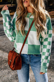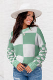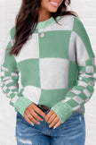 - With its classic checkered print, this sweater is easy to style with a variety of bottoms, such as jeans, skirts, or trousers