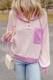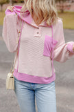 Women's Light Pink Corded Colorblock Patch Pocket Drawstring Hooded Top