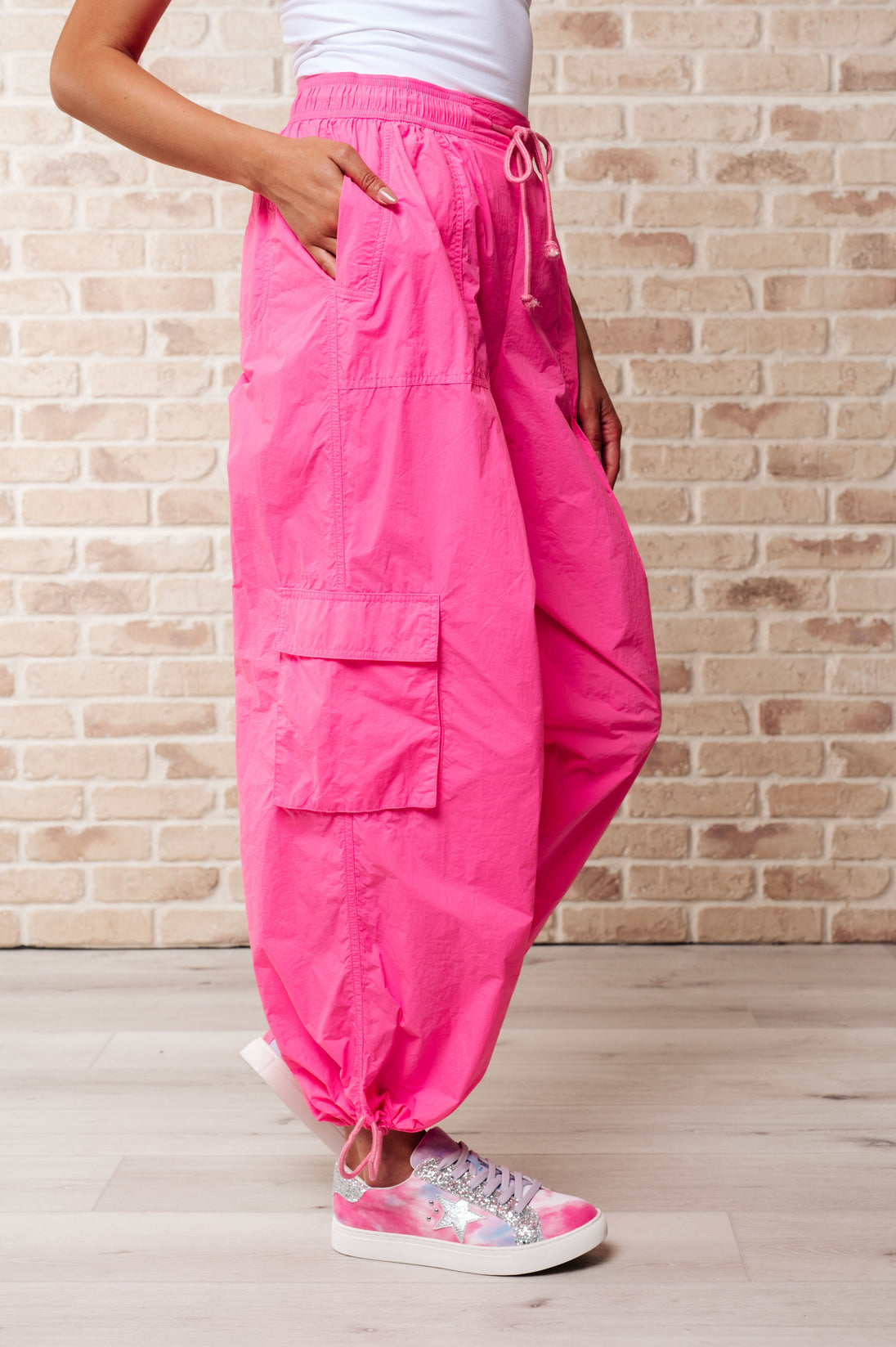 Be a fashion frontrunner in our First Place Cargo Pants! Made with windbreaker material for all-weather wear, these pants feature a functional drawstring, cargo and side pockets, and drawstrings at the cuffs. With added back pockets, you'll stay one step ahead while looking effortlessly cool.
