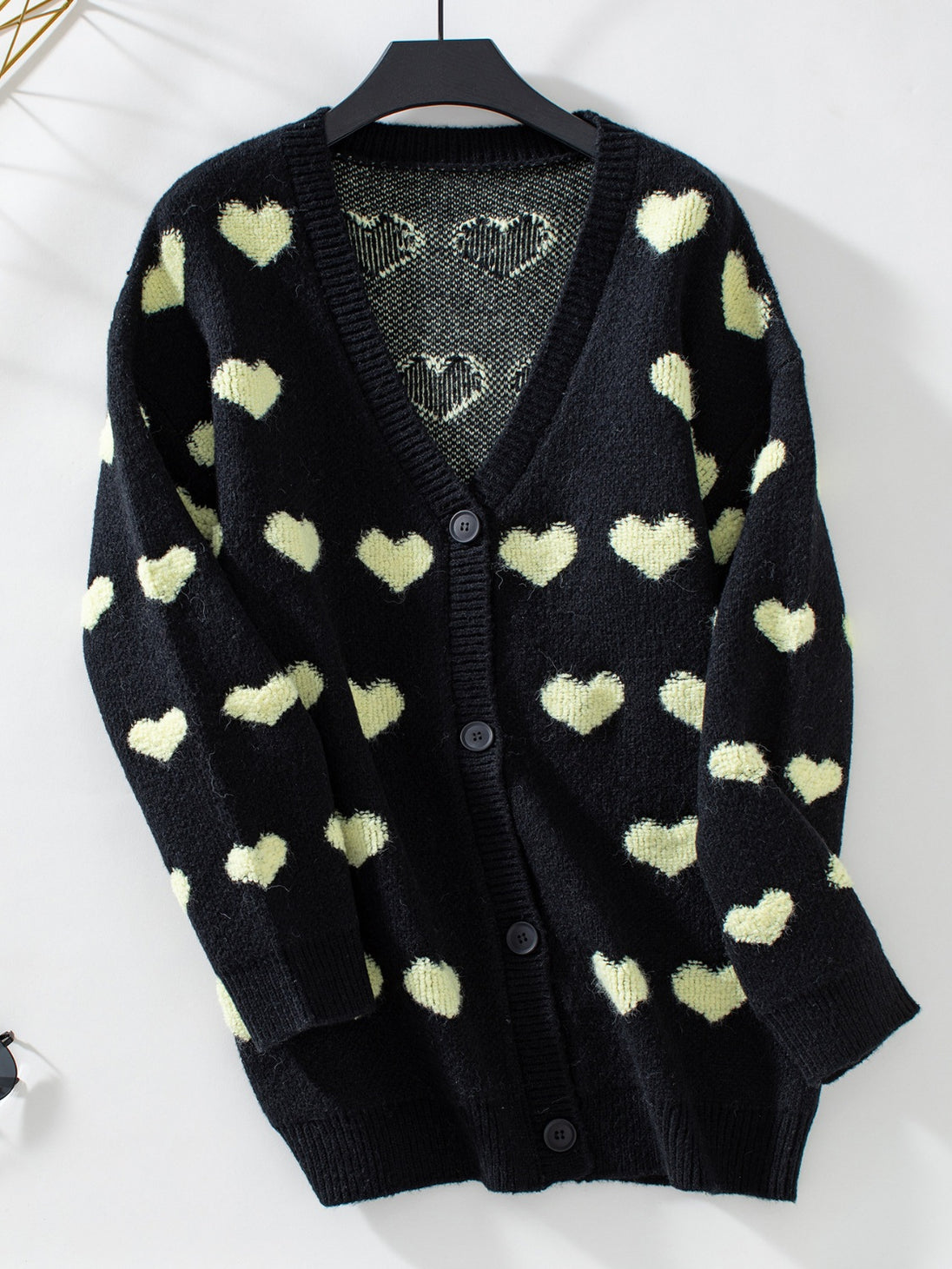 Women's Heart V-Neck Button Up Long Sleeve Cardigan