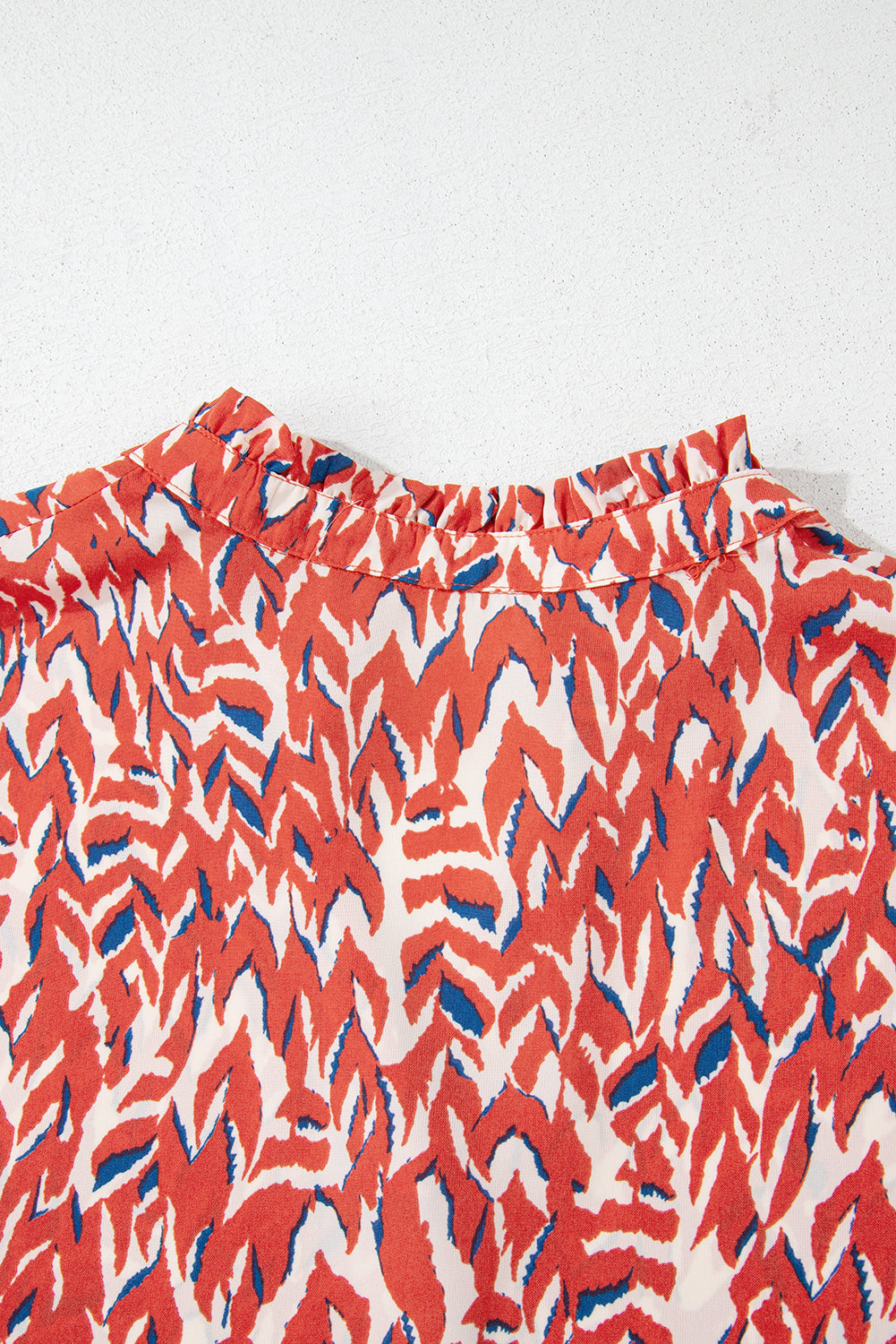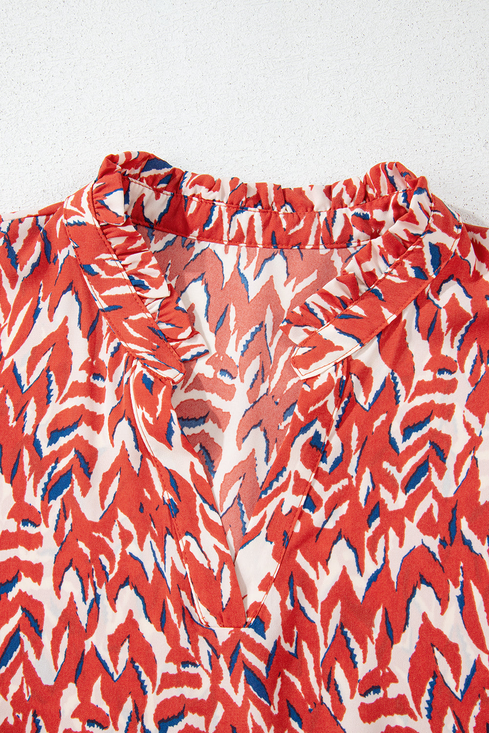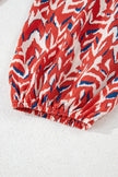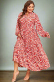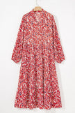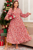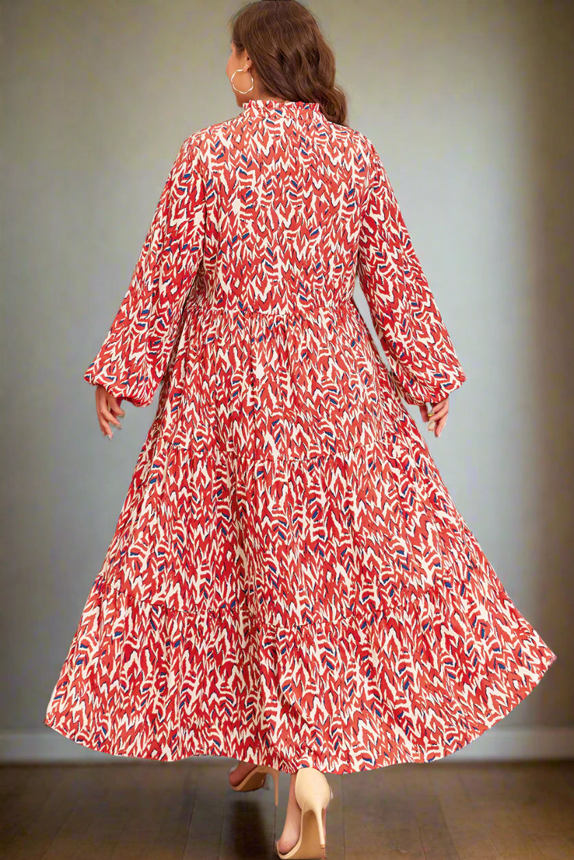 Women's Red Plus Size Abstract Print Notch V Neck High Waist Maxi Dress