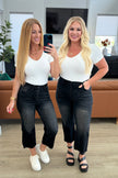 Get ready to rock stylishly in the Ryan High Rise Jeans! These wide leg crop jeans feature a coordinating button fly and a washed out black garment dye for a cool, edgy look. With a high rise and raw hem, you'll stand out in the best way possible.