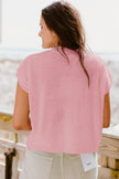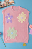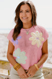 Women's Pink Multi Crochet Flower Knit Short Sleeve Sweater Top