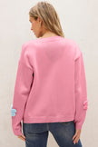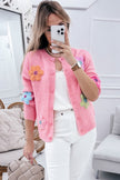 Women's Pink Cute Knitted Floral Pattern Button Up Cardigan