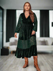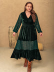 Women's Plus Size Lace Patchwork V-Neck Balloon Sleeve Midi Dress