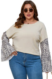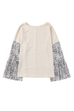 - It features a round neck, leopard bell sleeves patchwork and loose fit design finished