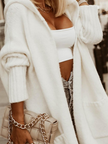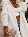 Women's Cardigan lapel hooded long wool loose sweater coat