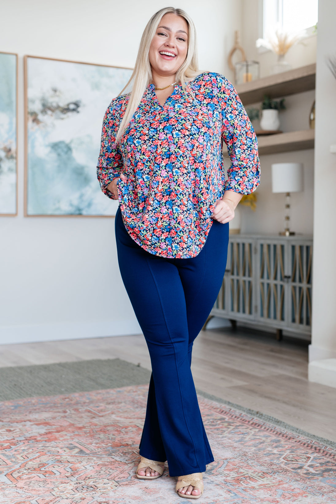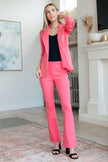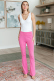 Achieve effortless style and comfort with our Magic Flare Pants! These high rise pants feature a flare hem and ponte knit for a flattering silhouette with a convenient pull-on design