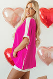Women's Rose Red Oversized Color Block Boat Neck Tunic Blouse