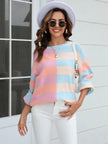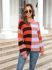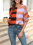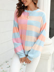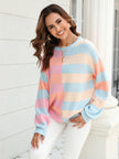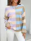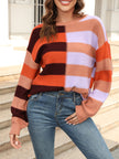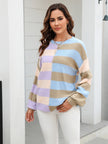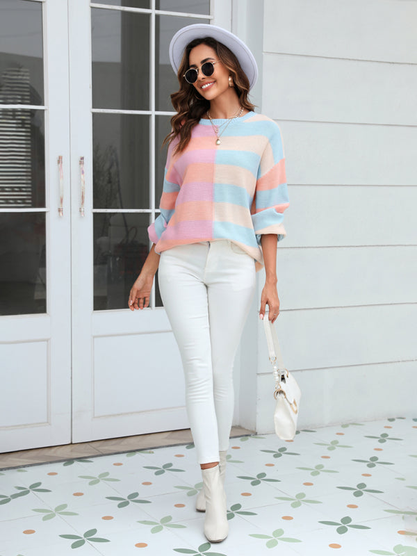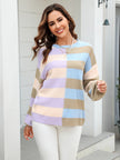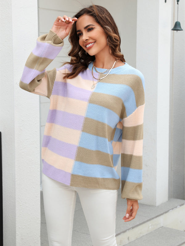 Women's patchwork striped contrasting crew neck sweater pullover