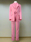Elevate your style with this Women's fashionable temperament lapel suit, crafted with a blend of 95% Polyester and 5% Elastane/Spandex for a comfortable fit. The suit features a sleek design and a chic lapel collar, making it perfect for a variety of stylish occasions. Add a touch of sophistication to your wardrobe with this versatile piece.