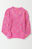 Women's Dark Pink Colorful Spots Knitted V Neck Casual Sweater