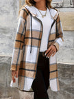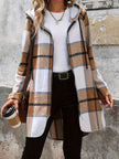 Women's Drawstring Plaid Zip Up Hooded Outerwear