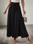 New Bow Loose High Waist Pleated Wide Leg Pants with Belt Pants