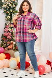 Women's Rose Stripe Plus Size Checkered Print Button up Shirt