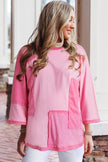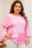 Women's Bonbon Oversized Patched High Low Bracelet Sleeve Plus Size T Shirt