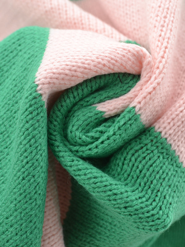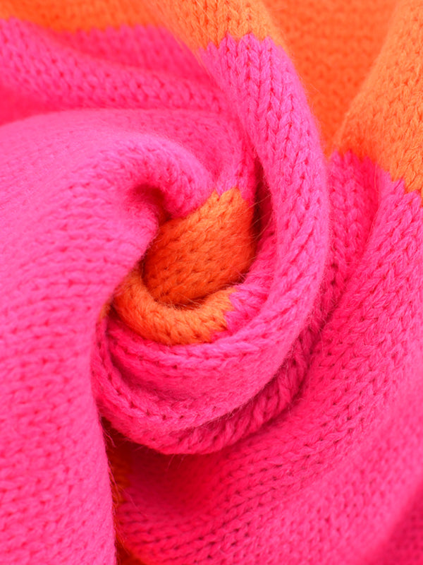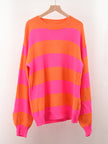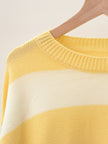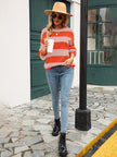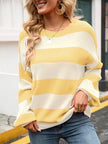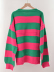 Women's patchwork striped round neck casual knitted sweater. Please use the size guide shown in our pictures. Before choosing a size, please read each element of the size guide carefully. Unique design, classic style, casual and comfortable. It is suitable for outing and leisure. The size is measured manually, and the error of 1-3cm is normal.
