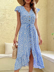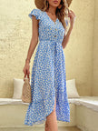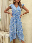 Women's Floral Print Flutter Sleeve V-neck Midi Dress