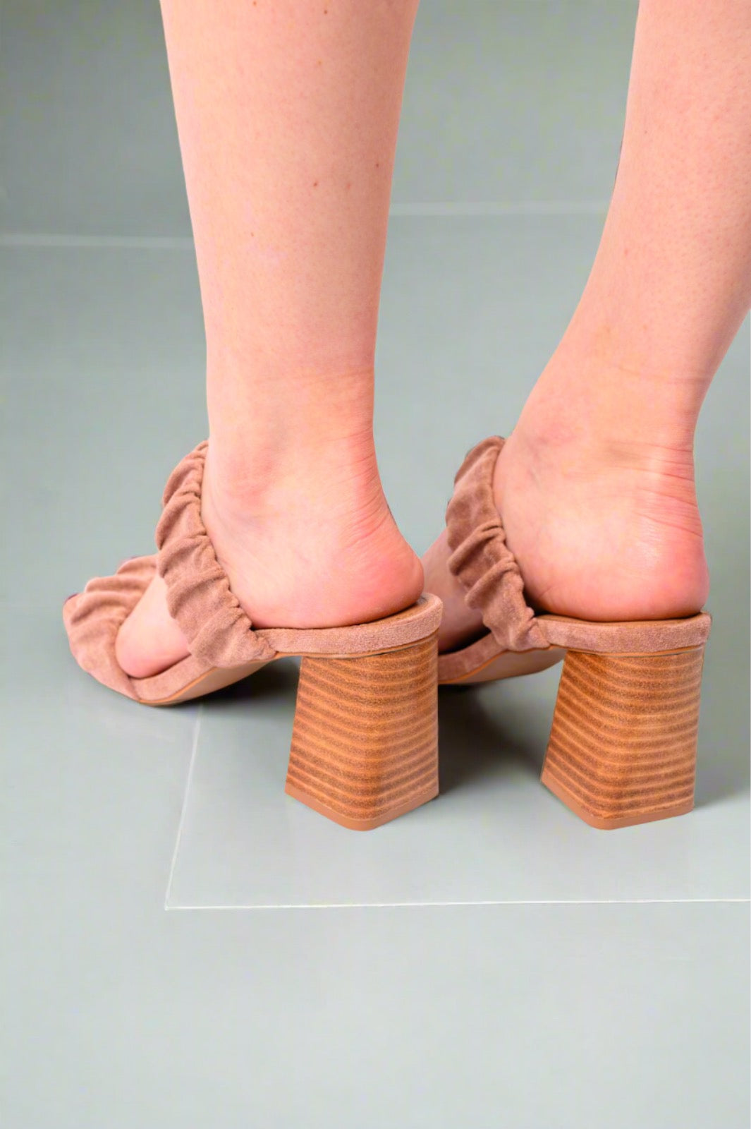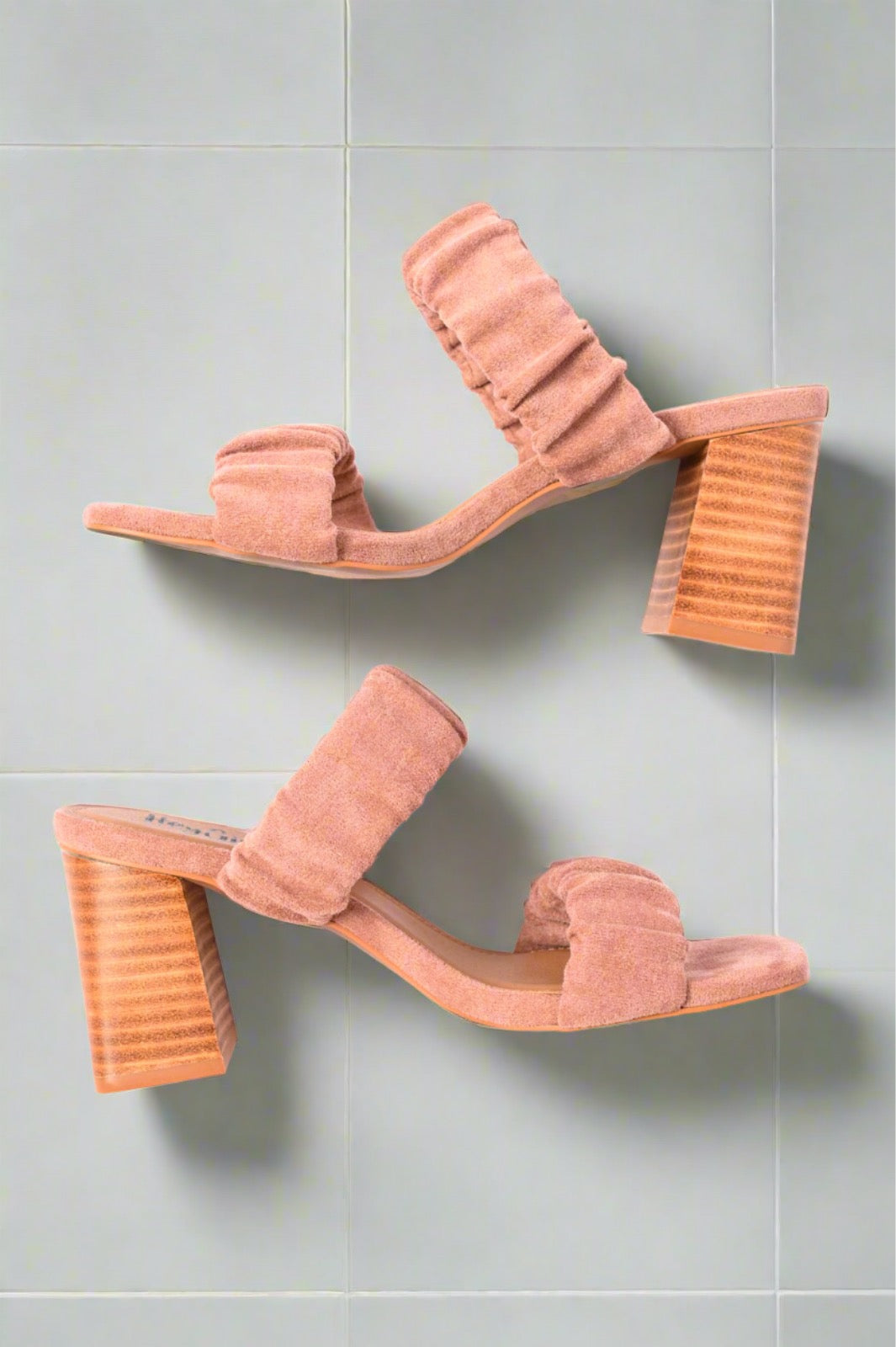 Step into the summer heat with our Tropic Like it's Hot Heels! Made with suede-like material, these open-toed heels have a 3" heel and a square toe, perfect for any occasion. The scrunchy strap adds a flirty touch to these versatile and comfortable shoes. Elevate your style with these must-have heels in blush suede.