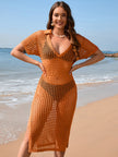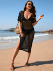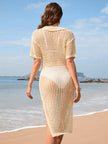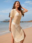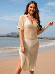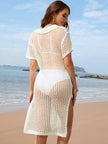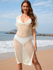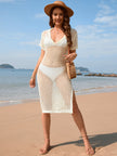 Slit Openwork Johnny Collar Short Sleeve Cover-Up