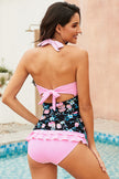 - Features: Tie back, frill trim, gathered detail, removable padding, lined top and bottoms, no underwire