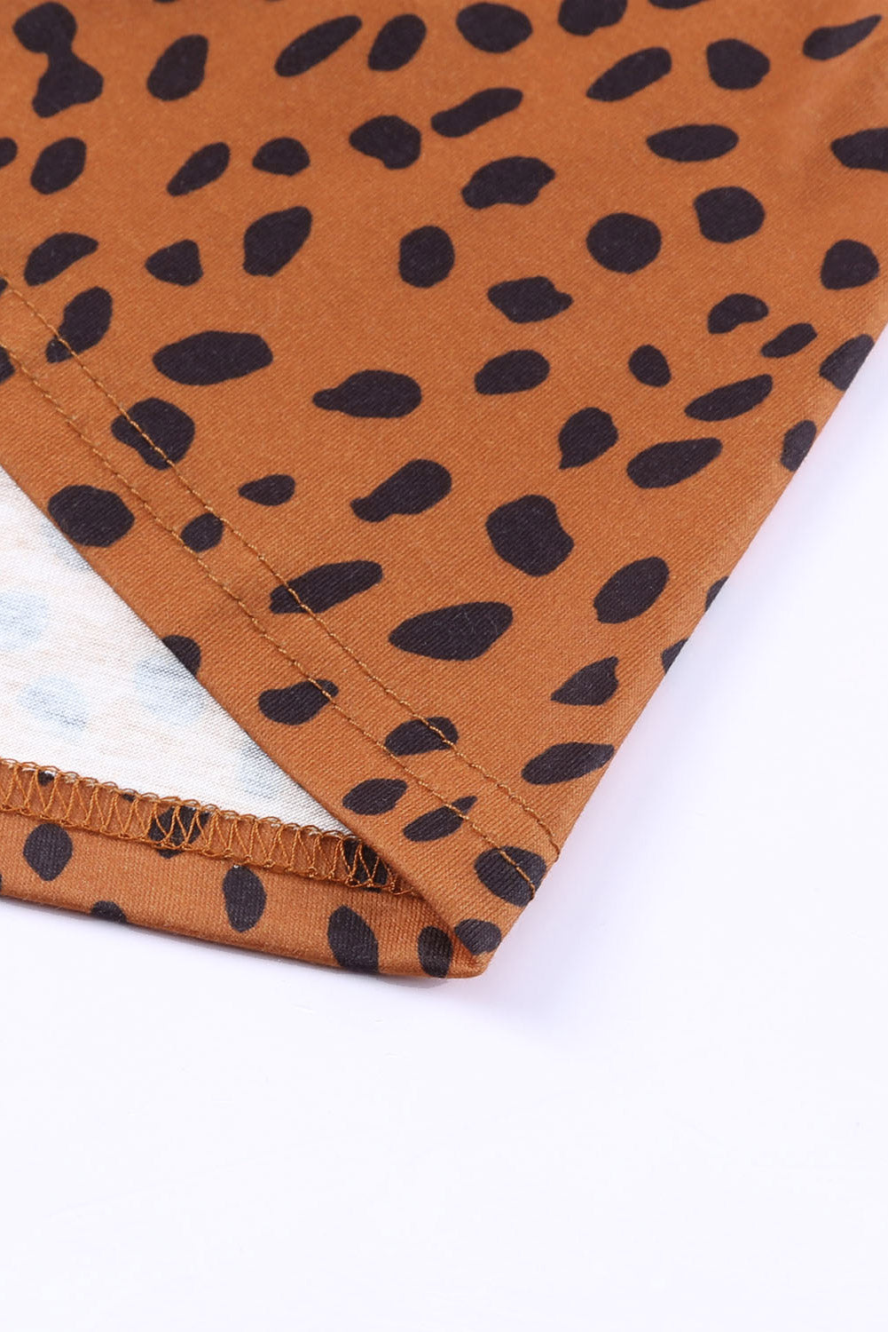 - It includes a crew neck, long sleeve, high waist, mini length, and animal pattern