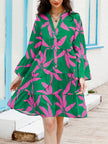 Women's floral print bell sleeve dress featuring a stylish fit in a soft and comfortable fabric. Whether it is daily, going out, vacation, work, etc., it can be worn by machine or hand.
