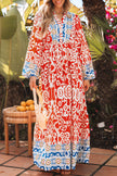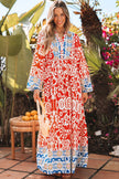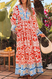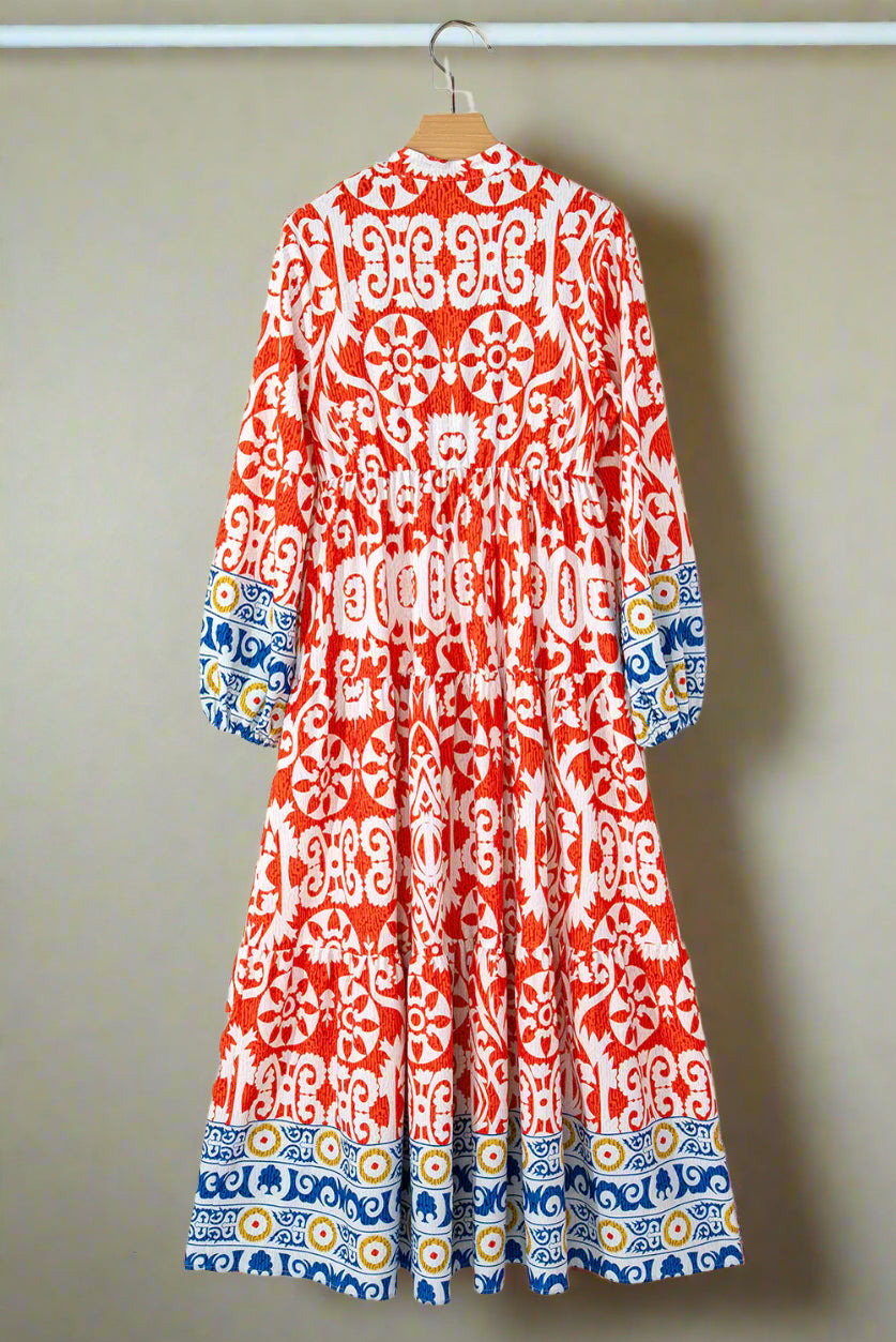 Women's Boho Geometric Printed Long Sleeve Maxi Dress