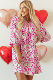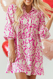 Women's Pink Leopard Print Loose Fit Babydoll Mini Dress