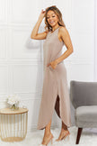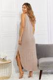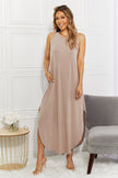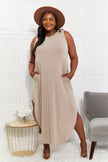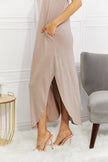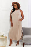 Elevate your style effortlessly with the Zenana Full Size Maxi Dress, a versatile wardrobe essential that seamlessly combines comfort and elegance. This maxi dress boasts a gracefully curved hemline, enhanced by a stylish slit and convenient pockets, making it a practical and chic choice.