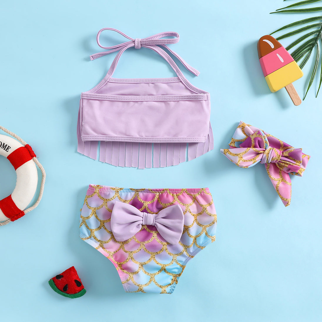 Girl's Mermaid Split Swimsuit Tassel Bikini Two-piece Set