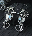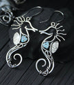 Women's Fashion Vintage Ocean Blue Gemstone Hollow Seahorse Earrings