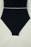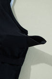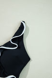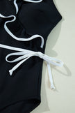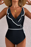 Women's Black Color Contrast Ruffled Wrap V Neck Swimsuit