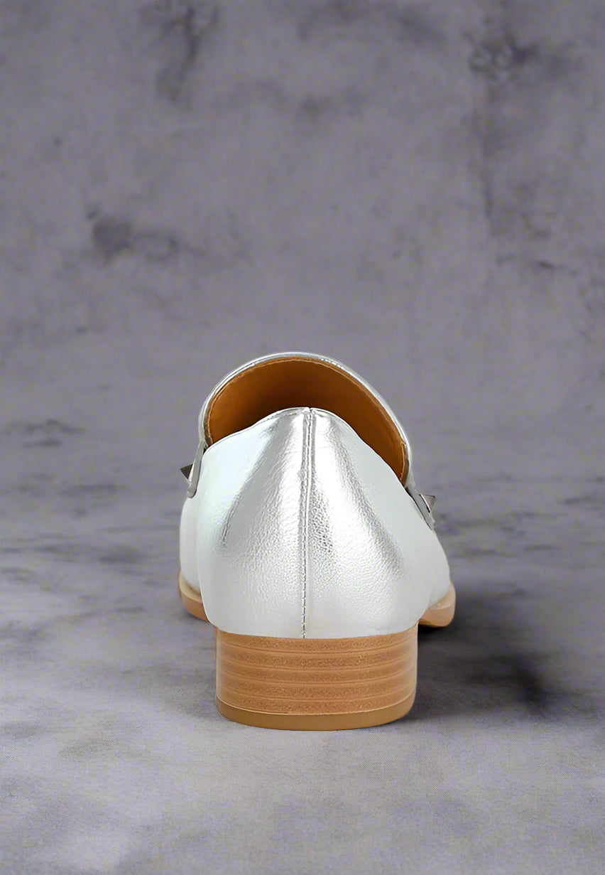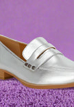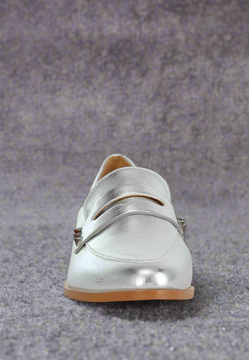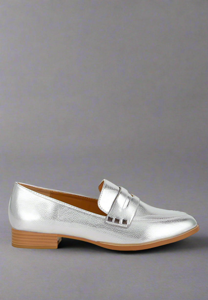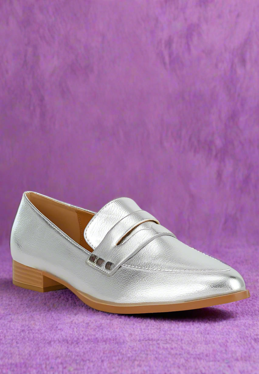 Seize the day in fashion with these loafers, effortlessly eliminating the hassle of choosing the right outfit. The loafers have a head-turning crinkled metallic finish and a chic almond toe that flatters your feet as the 2.5cm block heels provide a modest yet flattering lift without compromising comfort or walkability.