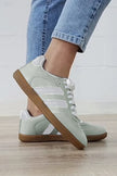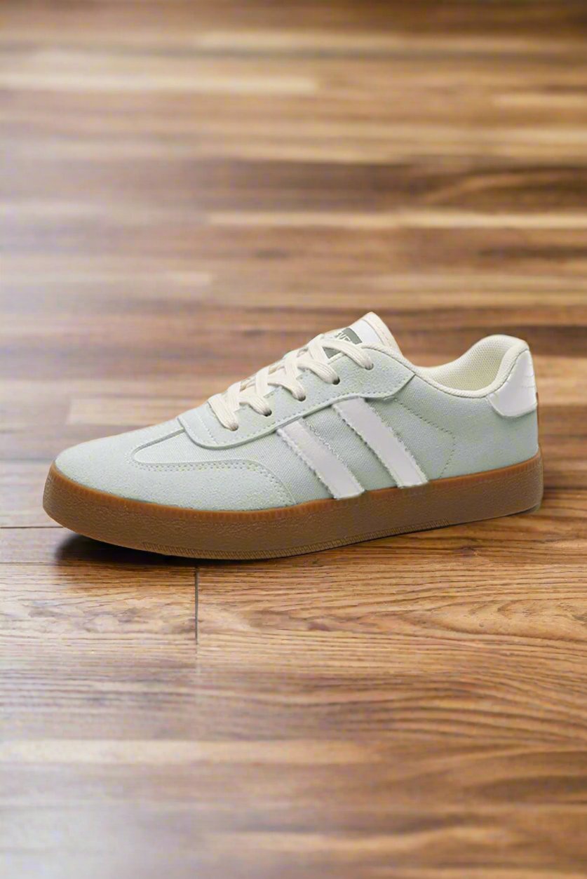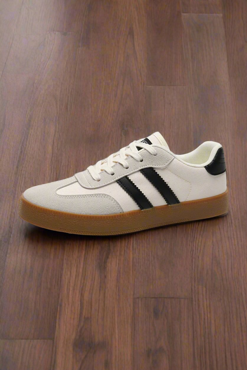 • Stylish and versatile, these lace-up sneakers feature a chic white color with subtle stripes.
