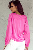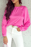 Women's Pink Satin Puff Long Sleeve Crewneck Blouse