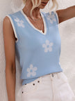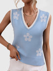Women's Contrasting Color Jacquard V-Neck Sleeveless Knit Tank Top