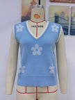 Women's color contrast jacquard V-neck sleeveless knit tank top with fashionable style and soft and comfortable fabric. It can be worn daily, going out, dating, vacation, etc. Washing method can be machine wash or hand wash. Fabric is wrinkle and pill resistant. The size is measured by hand, and it is normal for there to be an error of 1-3cm.